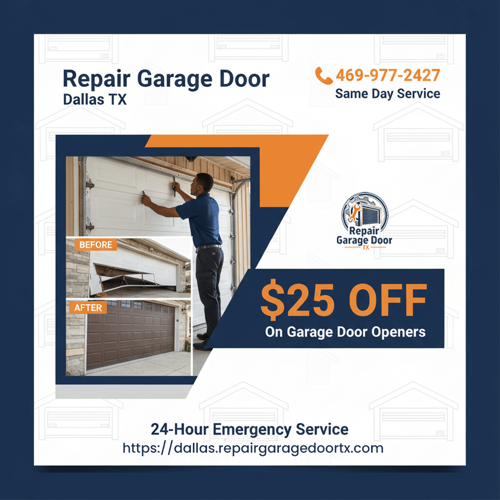Repair Garage Door Dallas TX presents upgrades, adjustments and repairs that enhance performance without the need for needless replacements. Repair Garage Door Dallas TX helps prolong the life of your current mechanism while making daily use simpler and quieter by repairing worn parts and enhancing door alignment.